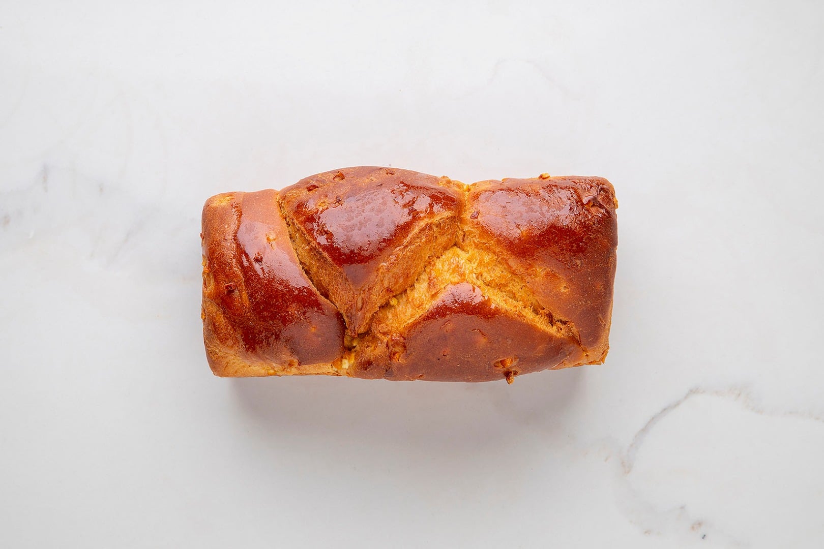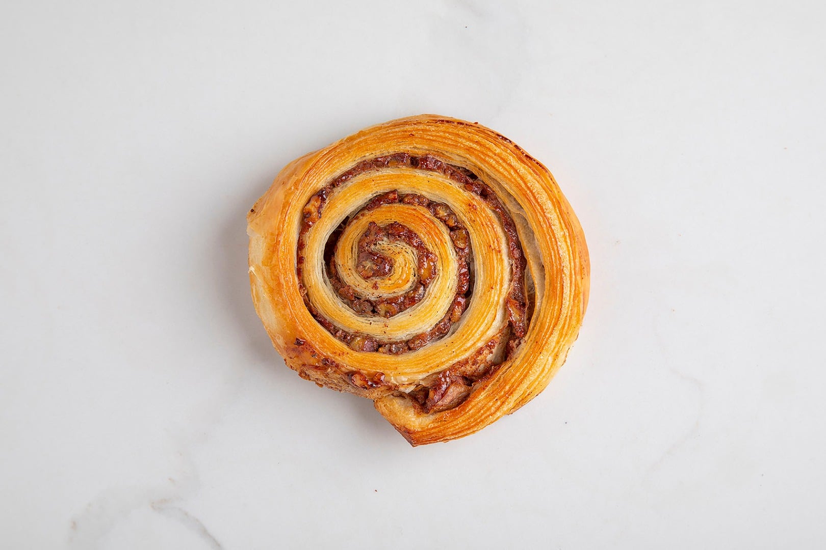Mąka pszenna Label Rouge, płynny zakwas pszenny, masło gostyńskie, krem pâtissière, cynamon, orzechy pecan.
